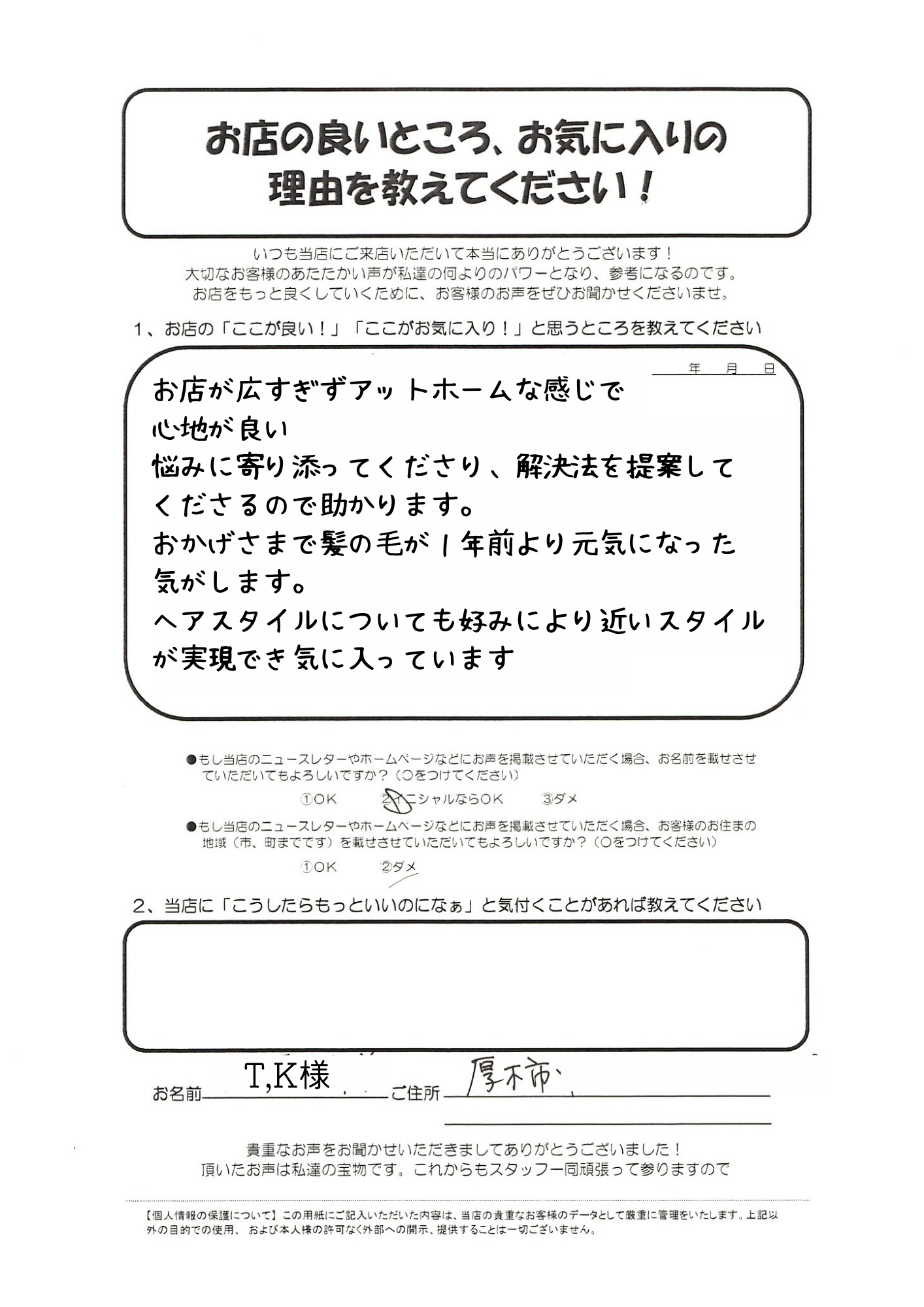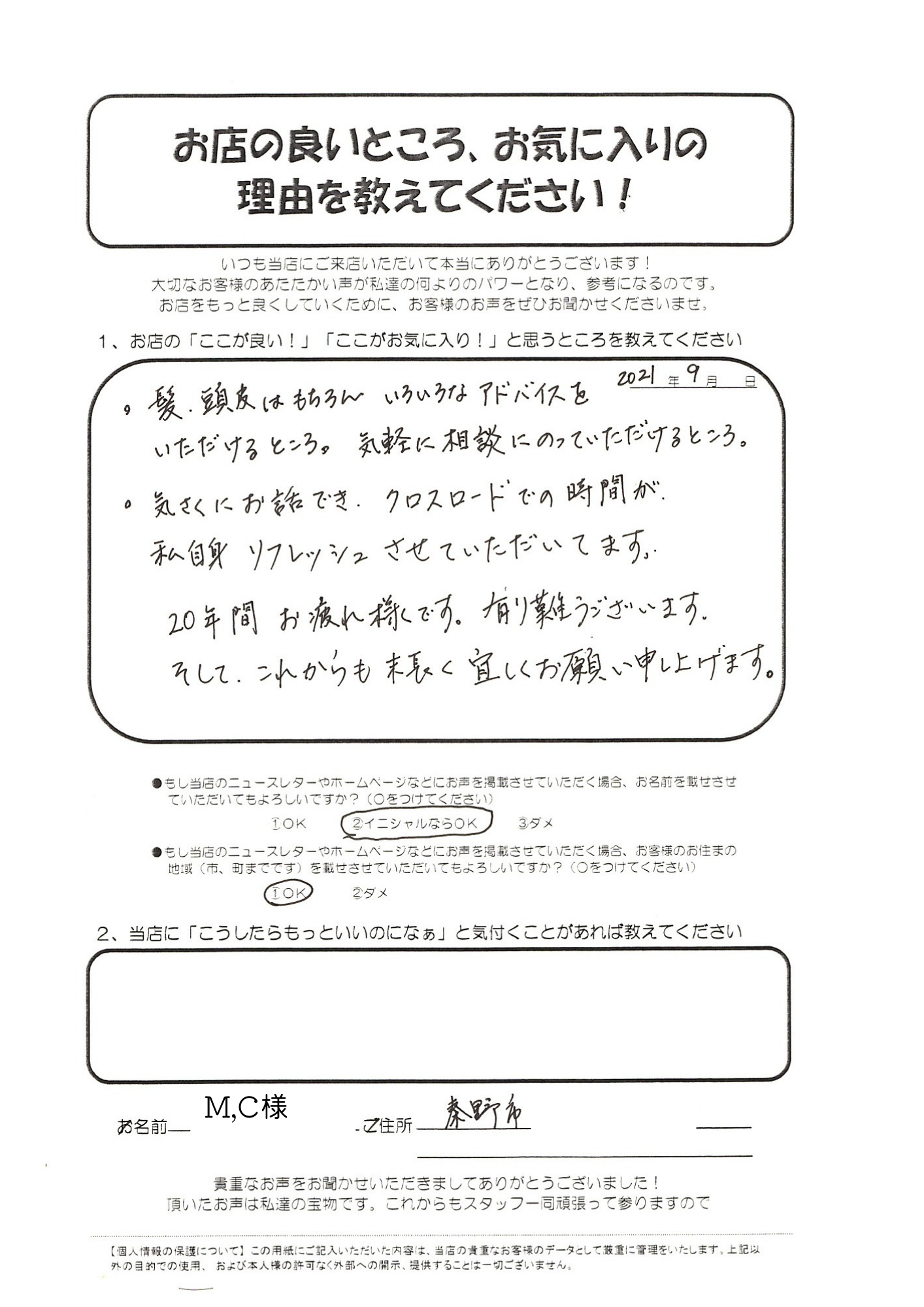 長年のお客様から『ブレてないよね。』と言っていただけることに感謝です!