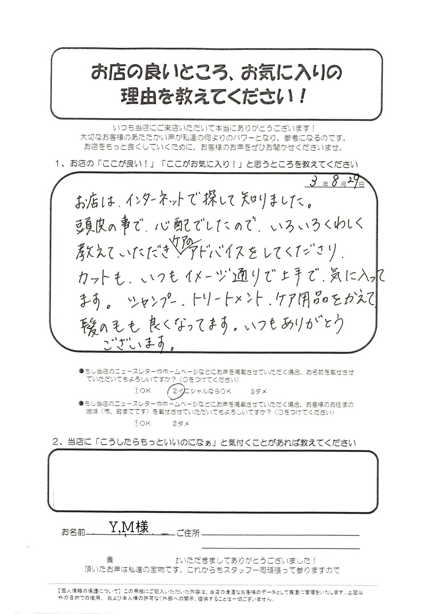そういったお客様の髪を、一生担当させていただきたいと願い
