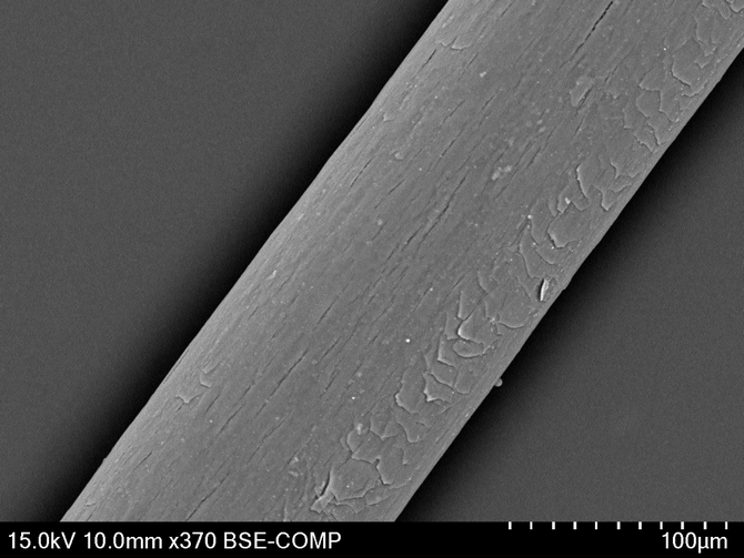 - 過剰なアイロンによりキューティクルが剥がれた髪の表面